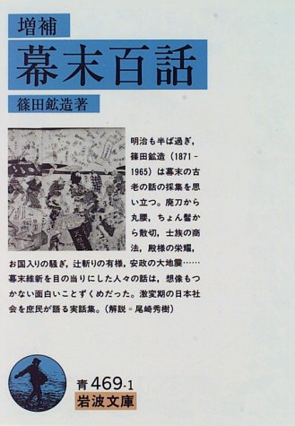 どんどんどんどん人間が「利」ばかりを追い求めて来て現在に至るわけだ。 明治になってからは一市井人として暮らしていた人に限って話を聞いており、生活が感じられるのがいい 無名の証言者たちによる歴史の側面ここに収められた聞き書きは、ほぼ100人の無名の人々による幕末明治の回顧談です。これは明治35年ごろに行われたというから、まさに幕末維新の動乱期を見聞きし、かつ生き延びた市井の人々による歴史証言と言えるでしょう。百話シリーズがまず復活したのが昭和7年、後版を重ねてまた昭和43年に復刻され、今また文庫として出ているのは、このような幕末・明治の側面史が如何に求められているかが反映されていると思います。いわゆる正史として取り上げられない裏話、それがまたノンフィクションとして面白いというのが、百話シリーズの魅力です。かつて明治期に新聞に連載されていた折は、かの森鴎外が参考にしたという話もあり、現在に至るまで歴史小説・時代小説家たちのタネ本として、大いに用いられてきた聞き書きです。平成の世、21世紀に復活した実話集として、一読の価値があります。
